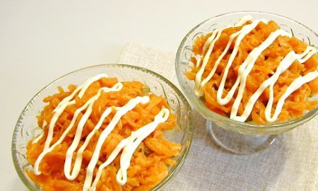 Étape 5 Ensuite - une couche de carottes cuites râpées sur une râpe grossière. Graisser avec de la mayonnaise.