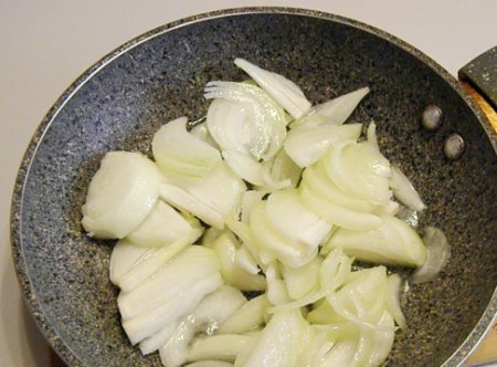 Étape 1 Coupez l'oignon en fines rondelles, faites-les frire dans de l'huile végétale. Salez, poivrez et laissez refroidir.