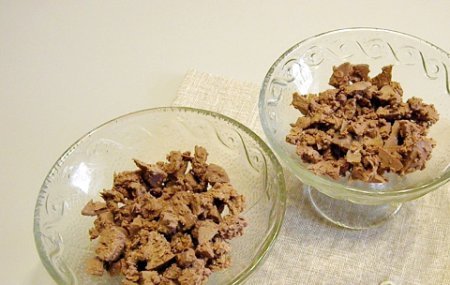Étape 2 Faire bouillir le foie dans de l'eau salée jusqu'à tendreté, laisser refroidir et couper en petits morceaux. Mettez dans les pialas avec la première couche.