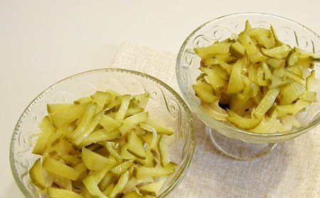 Étape 4 Couper les cornichons en fines lanières et les badigeonner de mayonnaise.