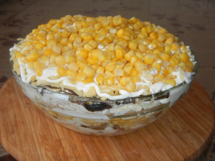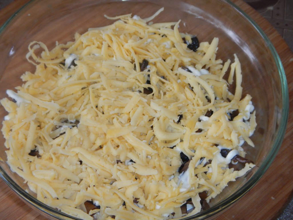 Étape 7 La couche suivante est constituée de fromage. Ici, si vous le souhaitez, vous pouvez ignorer la mayonnaise.