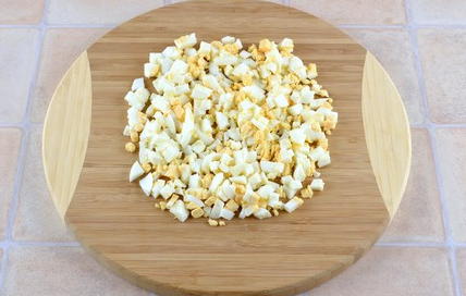 Étape 3 Faites bouillir les œufs dans un endroit frais, pelé et coupé en petits cubes.