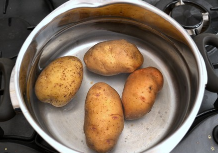 Étape 1 Faire bouillir les pommes de terre dans leur peau dans de l'eau salée, jusqu'à ce qu'elles soient cuites. Cool.