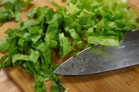 Étape 3 Lavez les feuilles de laitue, séchez-les et hachez-les finement.