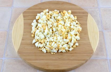 Étape 3 Faites bouillir les œufs dans un endroit frais, pelé et coupé en petits cubes.