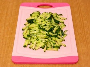 Étape 3 Lavez les poivrons, enlevez les pépins et la tige, coupez-les en lanières.
