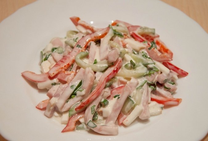 Étape 5 Mélanger tous les ingrédients préparés, ajouter des herbes hachées. Salade de saison avec de la mayonnaise.