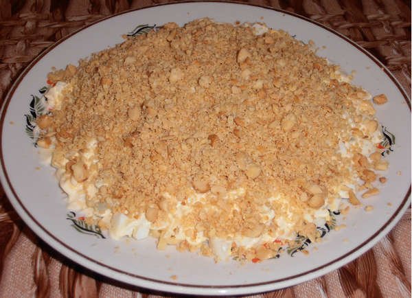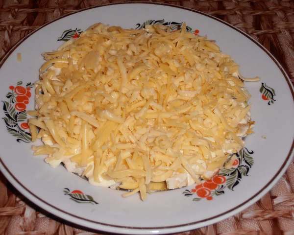 Étape 7 Disposez la salade en couches. 1ère couche - poitrine de poulet.