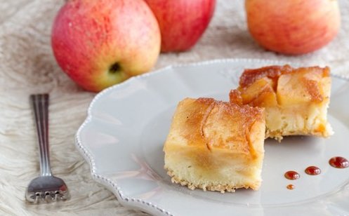 Étape 7Verser la pâte uniformément sur les pommes. Mettez le moule dans le four, mettez-le à 180 degrés et faites cuire pendant 30 à 40 minutes. Lors de la cuisson, le caramel va progressivement monter et pénétrer dans la pâte. Plus il y a de caramel, plus il coulera dans la pâte. Cela sera clairement visible lors de l'utilisation d'un formulaire transparent.