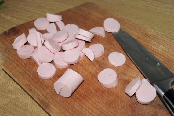 Étape 4 Pelez les saucisses et coupez-les en gros morceaux.