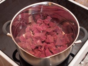 Étape 1 Lavez bien la viande et coupez-la en tranches. Verser avec 3 litres d'eau, cuire pendant 1,5-2 heures.