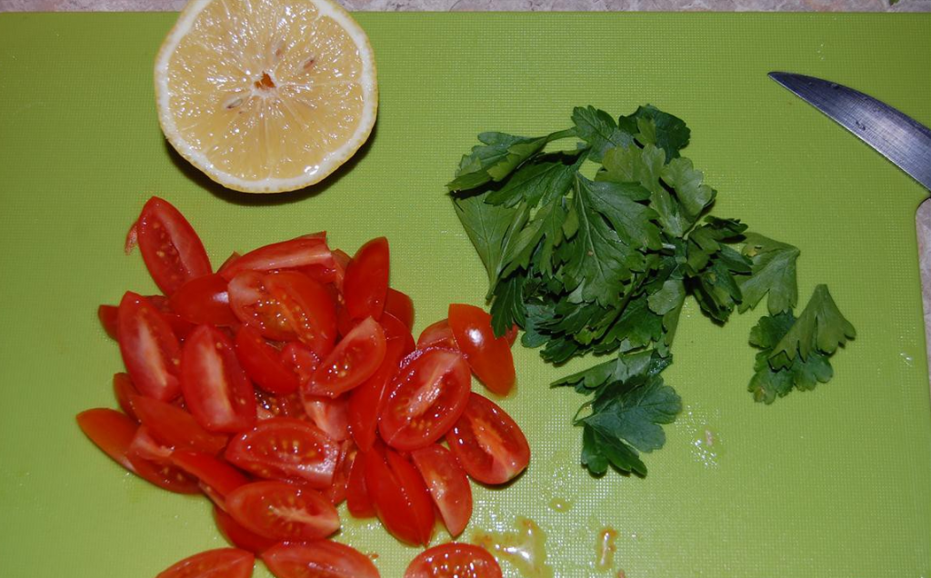 Étape 2 Laver les tomates, coupées en 4 parties. Préparez les feuilles de persil.