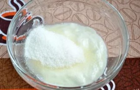 Étape 2 Battre la crème sure avec du sucre. Ajoutez un peu de sucre en fouettant constamment la crème sure.