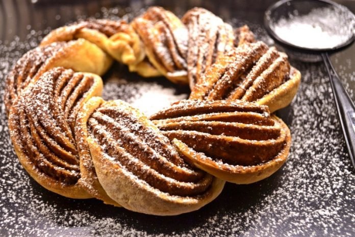 Étape 12 Envoyer la couronne de pâte préparée dans un four préchauffé à 175 degrés et cuire au four pendant 30 minutes. Des pâtisseries aromatiques fraîches, saupoudrez de sucre en poudre sur la couronne.