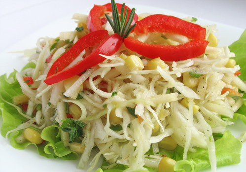 Étape 1 Hachez finement le chou, ajoutez un peu de sel et écrasez-le avec vos mains pour le ramollir et laisser couler le jus. Les poivrons sont pelés et coupés en fines lanières. Peler les pommes et les couper en lanières. Daikon aussi pèle et coupe en lanières. Mettez tout dans un bol profond.