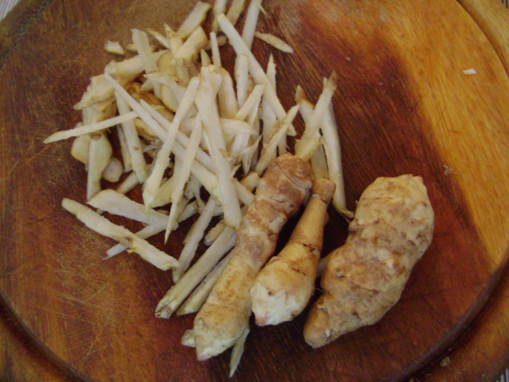 Étape 2Libérez les racines du topinambour de Jérusalem et lavez-les avec une brosse. Un tel nettoyage en profondeur permet de ne pas enlever la peau supérieure des fruits et donc d’économiser plus de vitamines. Hachez le topinambour sous la forme de nouilles fines.