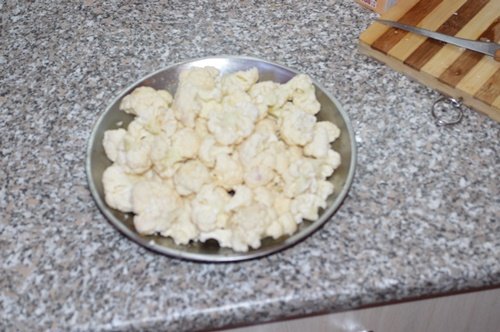 Étape 1 Démontez le chou-fleur en inflorescences, faites-le bouillir dans de l'eau salée (jetez-le dans de l'eau bouillante déjà) 5 minutes après l'ébullition. Égoutter ou enlever avec une cuillère à égoutter, laisser refroidir légèrement.