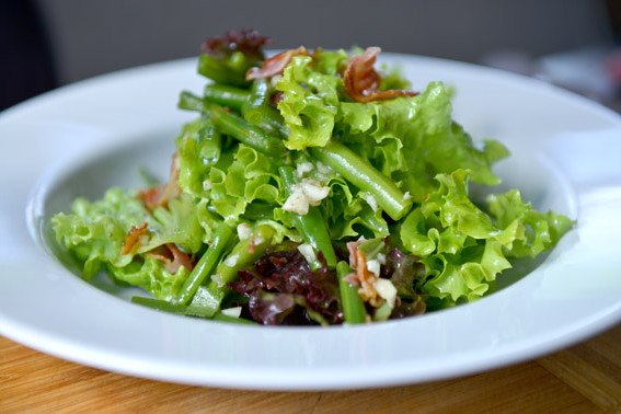 Étape 4 Déchirer les feuilles de laitue frisée avec vos mains, mettre dans un bol et ajouter les tranches de bacon préparées.