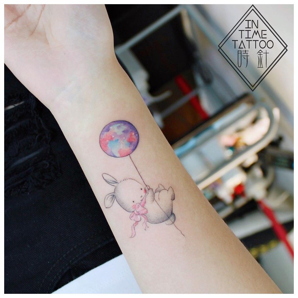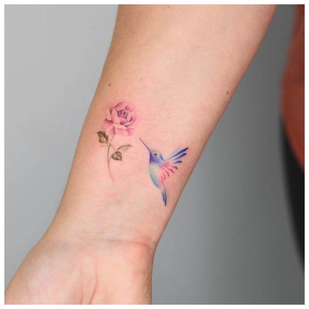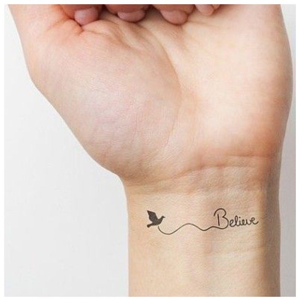 Les tatouages légers au poignet ont l’air détendu s’il s’agit de petits cœurs, de pattes d’animaux, de symboles et de signes. Les dessins solitaires sont les bienvenus, comme un avion, une étoile, 1 oiseau, etc.