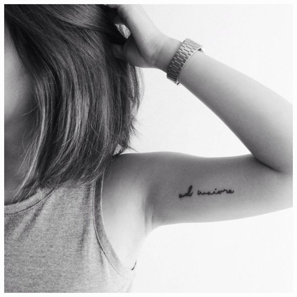 Les inscriptions de tatouage sont particulièrement populaires auprès des filles. Un tel tatouage semble minimaliste, vous permet de capturer des phrases et des mots importants sur votre corps.