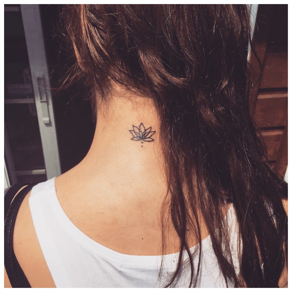 Dos du cou le plus souvent utilisé pour mettre une inscription personnelle ou un symbole secret. Les filles, si elles sont fatiguées d’un tatouage sur la nuque, pourront le cacher sous leurs cheveux lâches.