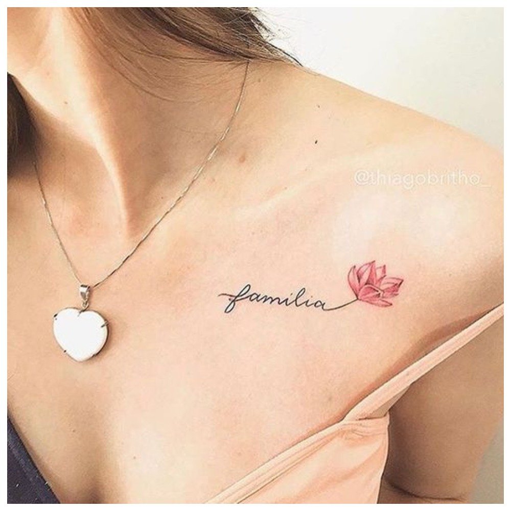 - L'originalité de l'endroit tient à la douleur, rarement tatouée à la clavicule. Par conséquent, la fille aura l'air "spéciale";