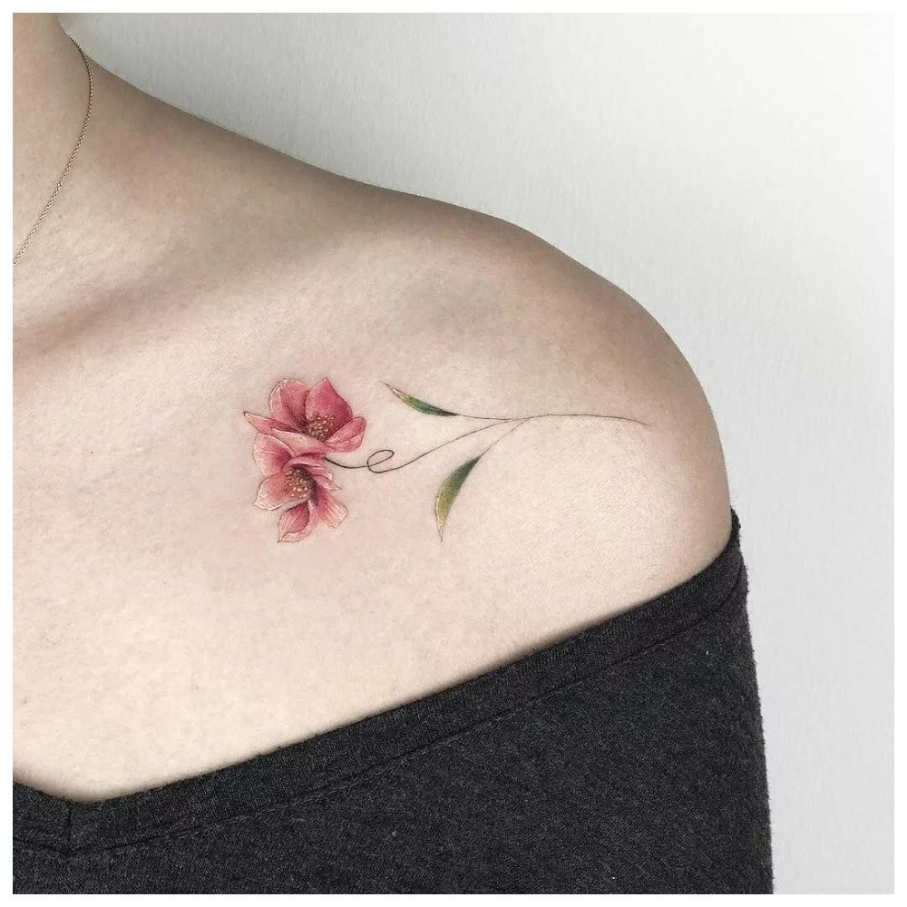 Les variations de couleurs préférées sont les tatouages de clavicule noir et blanc, ainsi que les tatouages colorés. Néanmoins, la plupart des filles font ce dessin pour souligner leur féminité et leur unicité. Un motif doux et soigné aura l’air meilleur qu’un grand tatouage multicolore.