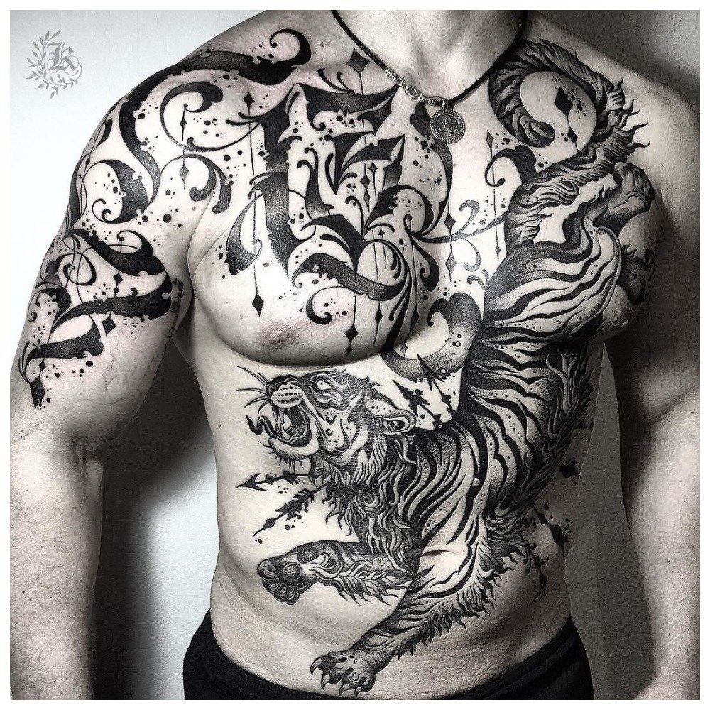 Dans les temps anciens, les tatouages sur la poitrine servaient de talisman à l'homme. Ils symbolisaient un bouclier et couvraient la partie la plus vulnérable du corps humain - le cœur. Aujourd'hui, le symbolisme du tatouage pour les hommes sur la poitrine a un peu changé. En gros, c’est une façon de se démarquer et de s’exprimer, ainsi que de mettre en valeur de beaux muscles en relief.