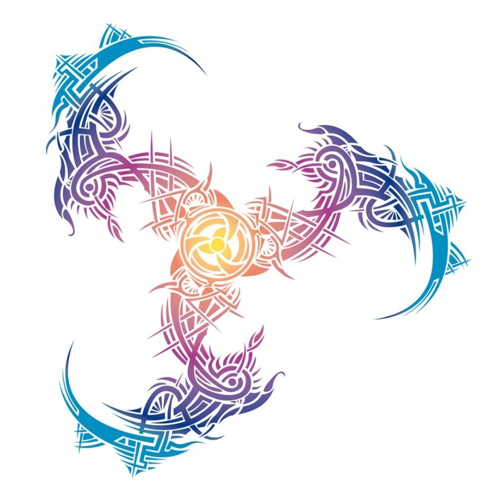 Le motif le plus commun des motifs ethniques est le celtique.En fonction des souhaits concernant la signification du tatouage, l'un ou l'autre motif est choisi. De plus, dans certains cas, des portraits ou des images d'animaux sont ajoutés au motif pour donner à l'image un sens plus profond.