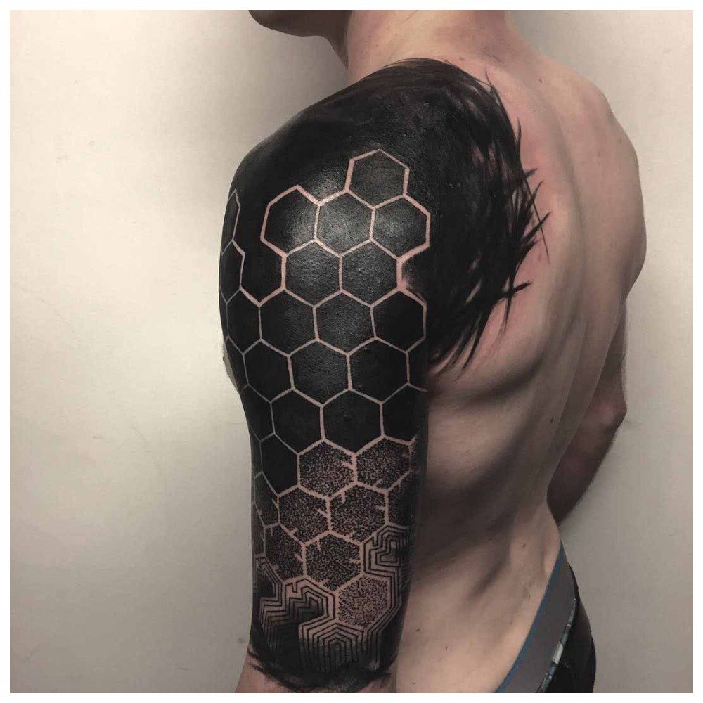 Les grands tatouages semblent très harmonieux sur l'épaule masculine. Et peu importe le style dans lequel ils sont fabriqués. Cela peut être du blackwork, des dessins japonais et même un tatouage de contour.