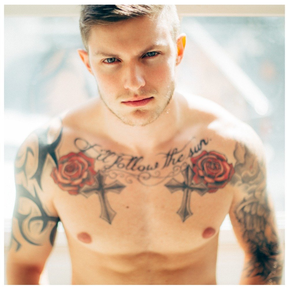 À propos, la principale tendance féminine de l’année - les tatouages sous la clavicule - est également pertinente pour le sexe fort.