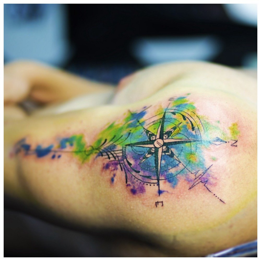 La technique de l'aquarelle est une combinaison de couleurs vives et riches et d'un travail délicat. De plus, elle peut avoir un tatouage dans ce style, à la fois avec un contour clair et un contour flou. Les dessins réalisés avec des taches "aquarelles" sont particulièrement intéressants.