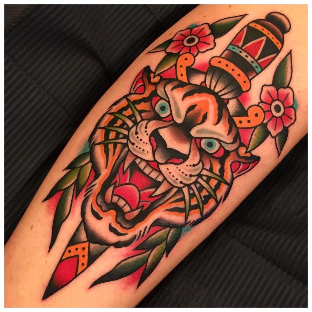 Le résultat est des tatouages très lumineux et mémorables. Cependant, ils doivent être faits avec précaution afin qu'au lieu d'une vieille école cool, un partak ordinaire ne fonctionne pas.