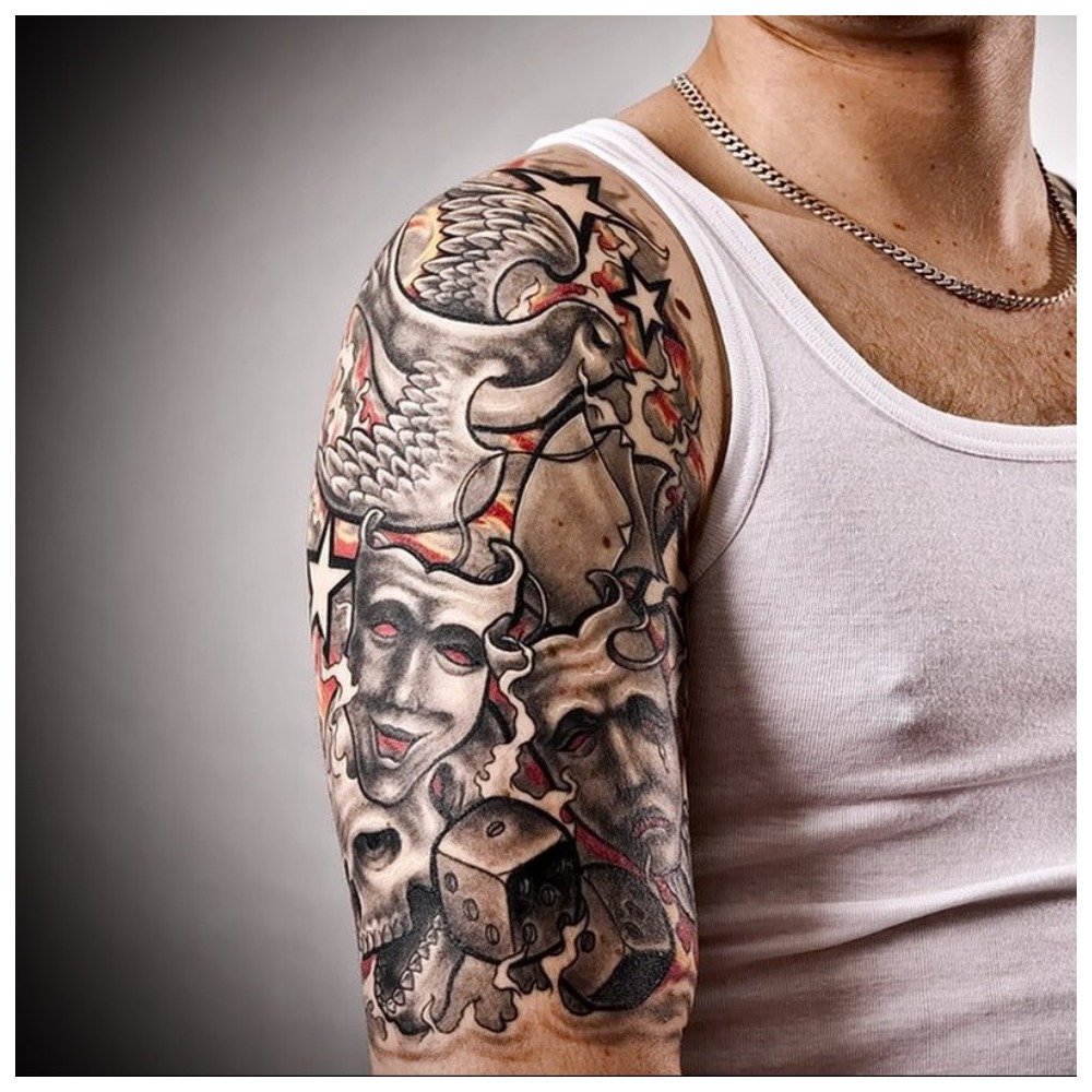 Pour une raison quelconque, certains pensent que les tatouages au travail noir sont «diaboliques», et cette opinion est apparue uniquement à cause du grand nombre de zones noires dans le tatouage. En fait, sachez qu'au départ, ce style n'était né que de la nécessité de peindre par-dessus de vieux dessins.