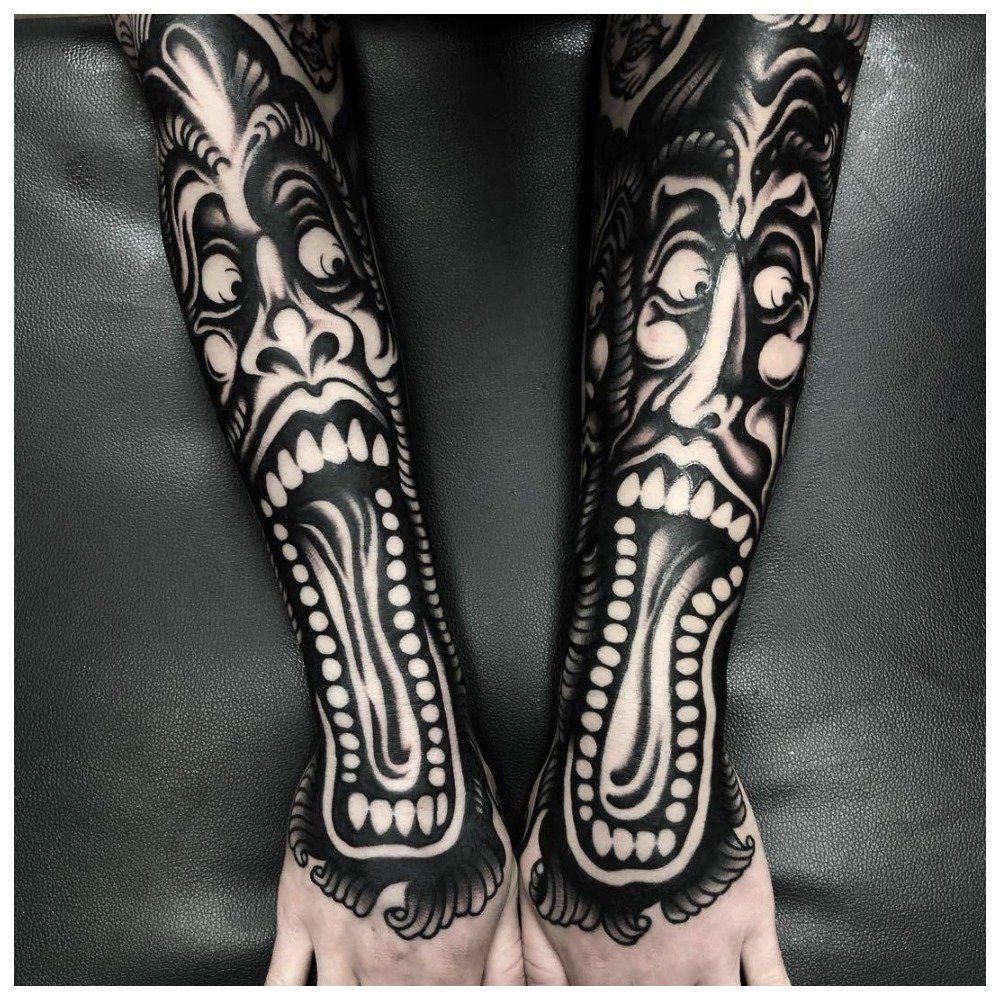 L'objectif principal d'un tel tatouage est un impact négatif sur le psychisme. C'est pourquoi ce style est de moins en moins demandé.