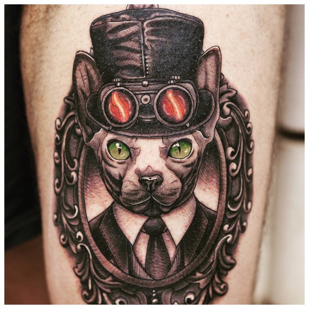 Steampunk est une direction bien connue de la littérature et du cinéma, qui a migré dans la mode puis dans le style des tatouages. Dans cette technique, le corps humain apparaît comme un biomécanisme. Par conséquent, il est très facile de le confondre avec la biomécanique.