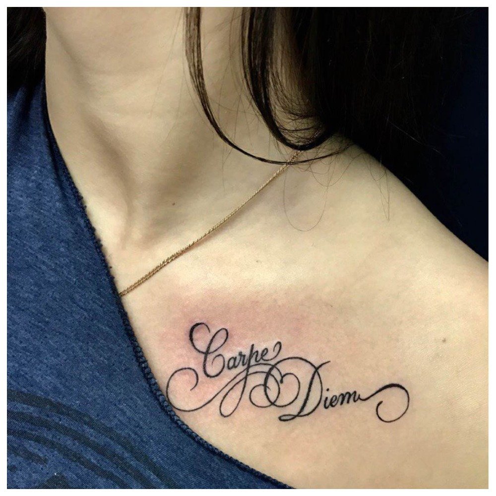 La police est sélectionnée individuellement, en fonction du lieu de tatouage et du texte lui-même. Cela peut être une police classique voire italique ou calligraphique, alors que les hommes préfèrent les options gothiques.