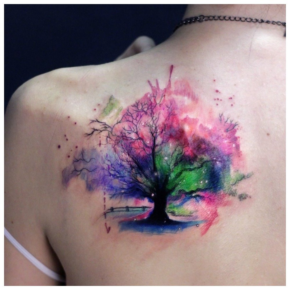 Les tatouages à l'aquarelle sont faits exclusivement en couleur. Vous pouvez sans risque dire qu'un tatouage dans ce style est un véritable art! Depuis les dessins sont très beaux et lumineux.