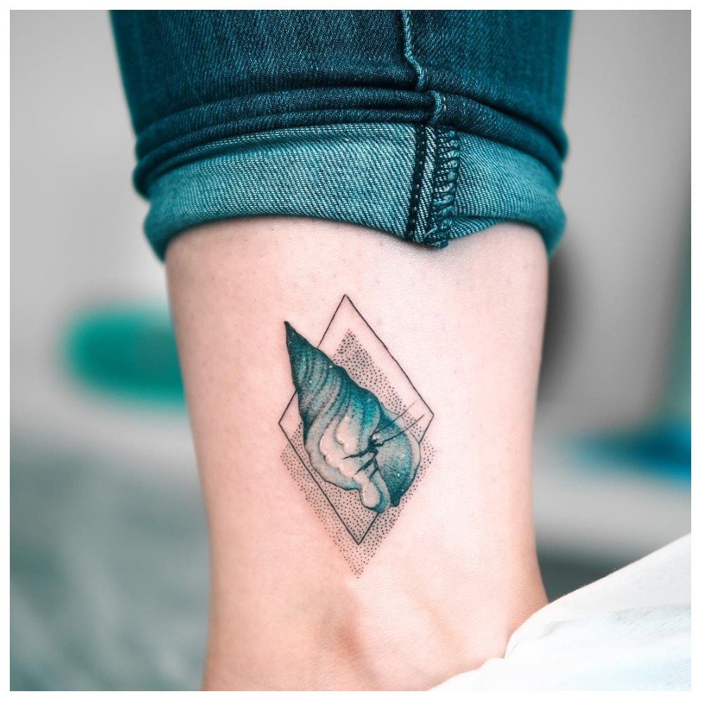 En outre, un tatouage à l'aquarelle peut avoir un contour clairement défini, mais le plus souvent, il est dessiné dans son style relatif à partir d'un contour flou, de points, de traits et de taches. Tout cela a l'air original et à la mode.