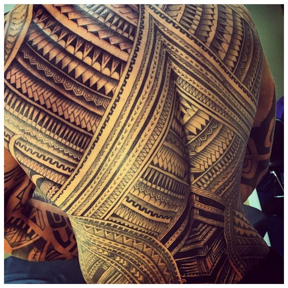 Une autre variété de tatouages ethniques est la technique polynésienne. Le dessin réalisé dans ce style se distingue par la symétrie, la rigueur et la précision de l'ornement.