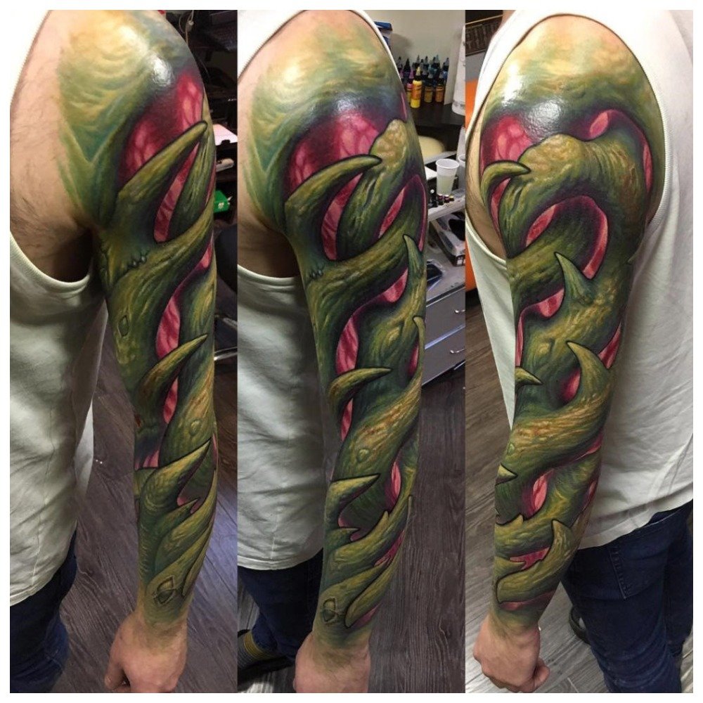 Outre le style gothique, on peut également considérer une technique aussi inhabituelle que l’horreur, qui, traduite de l’anglais, signifie horreur. Le genre de l’horreur se réfère généralement directement à des films ou à des jeux, mais il a également gagné des adeptes dans le domaine des arts corporels. L'horreur peut même être attribuée à une sous-espèce de tatouages gothiques.