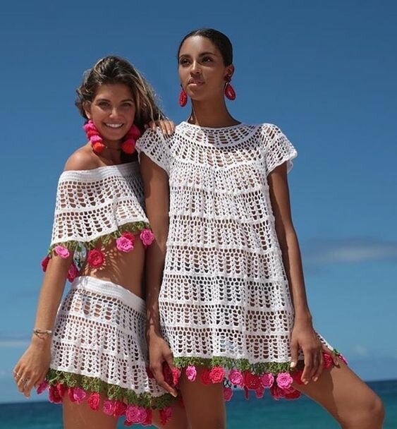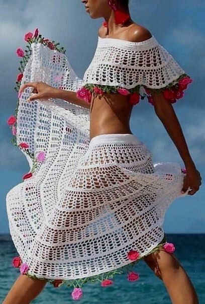 Par exemple, Cette tenue est liée aux reportages, malgré le bicolore. Lors du tricotage, moins de points de suture et plus de doubles crochets sont utilisés. Dans les transitions entre les lignes, utilisez un motif plus clair avec un grand nombre de v / p et st / s n. comme composé.