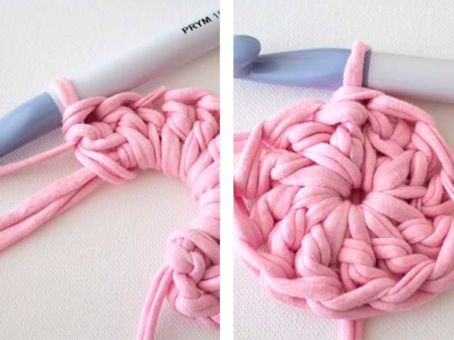 - Tricoter en cercle (crochet simple). Fermez le produit - c'est prêt!