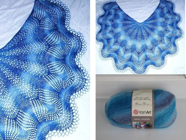 Beaux modèles! Beaucoup d'informations. Merci pour la description du processus de tricotage. Jusqu'à présent, je ne faisais que des châles au crochet, mais je veux essayer avec des aiguilles à tricoter. Je regarde le châle bleu depuis longtemps, mais l’article ne contient ni diagramme ni description, mais seulement une photo. Si possible, publiez le schéma, et même mieux - une classe de maître. Je vous en serais très reconnaissant. Merci pour votre travail formidable.