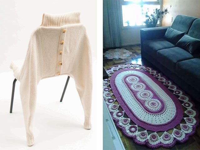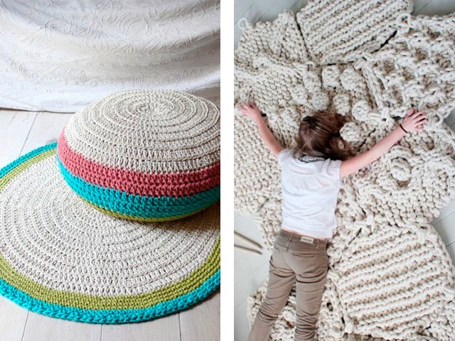 Comme vous pouvez le constater, une telle technique peut être utilisée pour tricoter non seulement la literie sur une chaise, mais également un petit tapis pour enfants ou un support chauffant. Mais dans ce cas, n'utilisez pas de fil de laine, mais du coton!