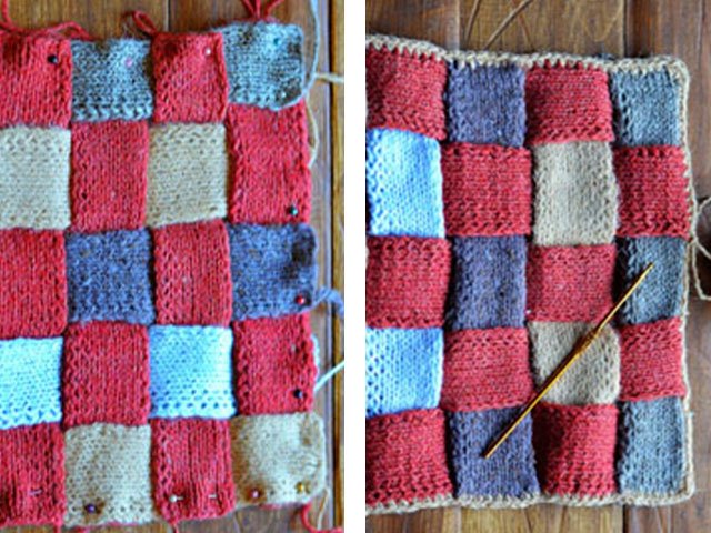 Maintenant, nous le recueillons dans un motif en damier, comme indiqué dans la figure ci-dessous. Pour que ça ait l'air fini, nouez autour du périmètre de S.B.N.