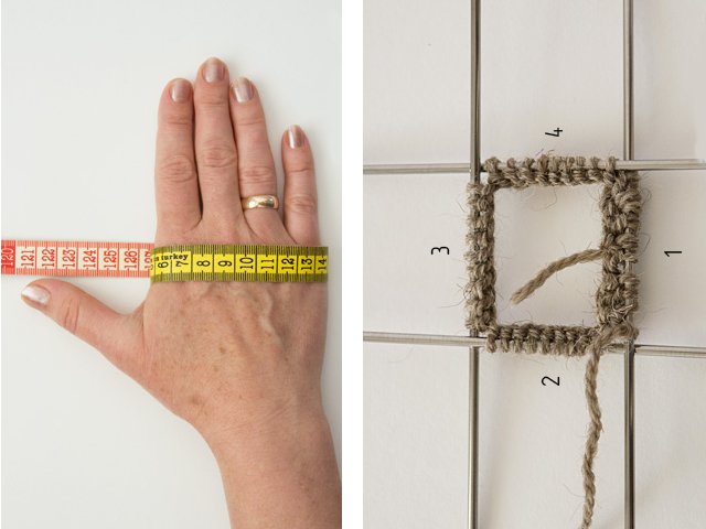 2. Nous travaillons avec un élastique de 1 x 1 ou 3 x 3, comme vous le souhaitez. Environ 8 cm;