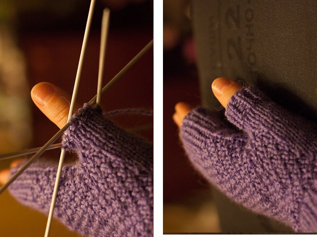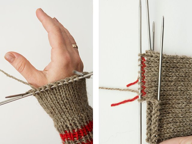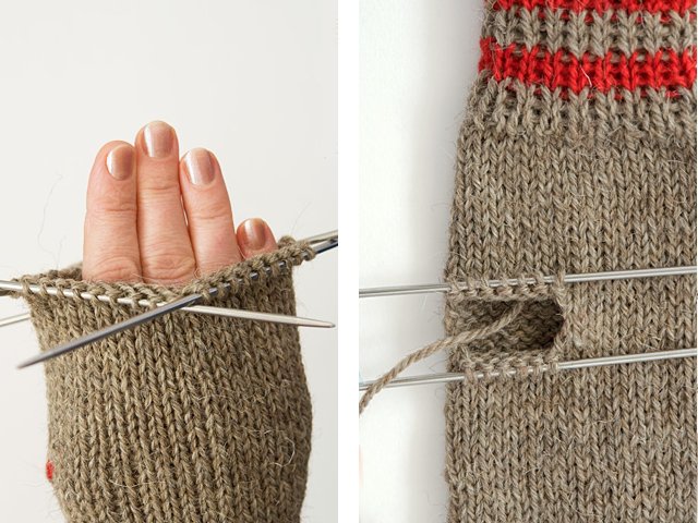 Nous avons tricoté un pouce sur un gant. Prenez les boucles et tricotez à 16 p.