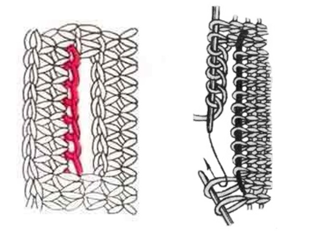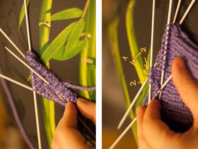 a. sur la 2ème joint-venture nous tricotons des boucles selon la photo. Quand jusqu'à la fin de la ligne il reste 4 points, on ajoute 1 point;