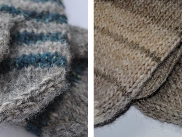 Nous commençons à tricoter la manchette avec un élastique 1 x 1. Nous alternons les couleurs de nos mitaines tous les 3 rangs, nous tricotons donc jusqu’à 5 - 7 cm.